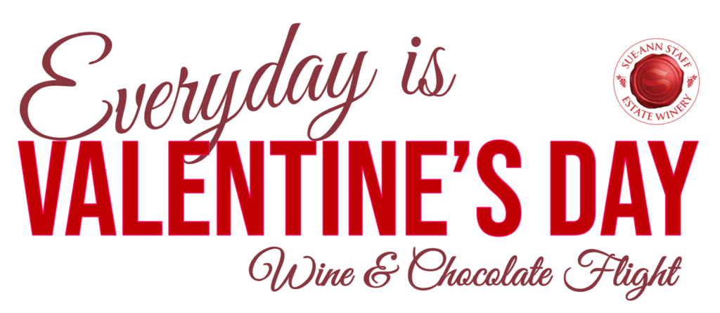 Available daily in February at Sue-Ann Staff Estate Winery, the Everyday Is Valentine’s Day: Wine & Chocolate Flight includes three wines and three chocolate treats. The best part? You get to choose your wines based on our recommendations!
